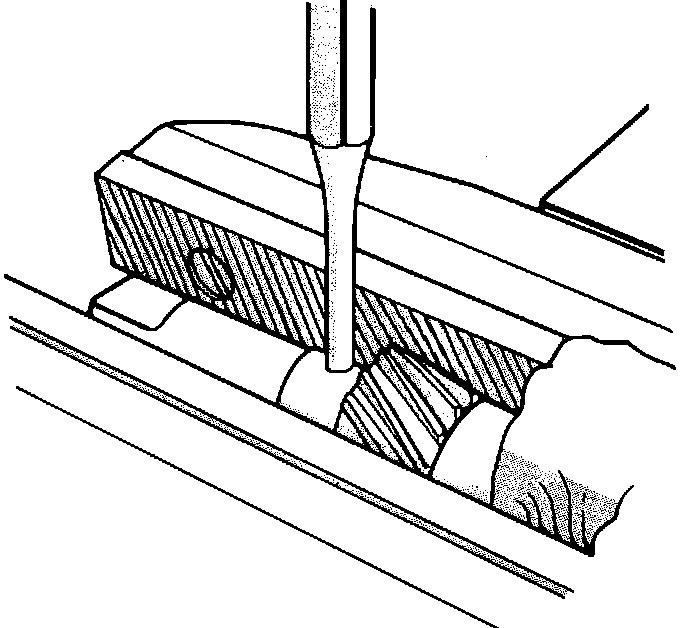 2. Remove the distributor gear from the shaft using a small punch and a hammer to drive out the retaining roll pin.