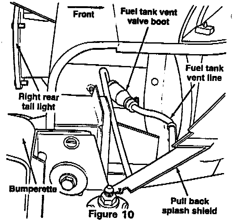 2. Pull back splash shield and locate fuel tank vent valve in fuel vent line in right rear fender well of vehicle (Figure 10).