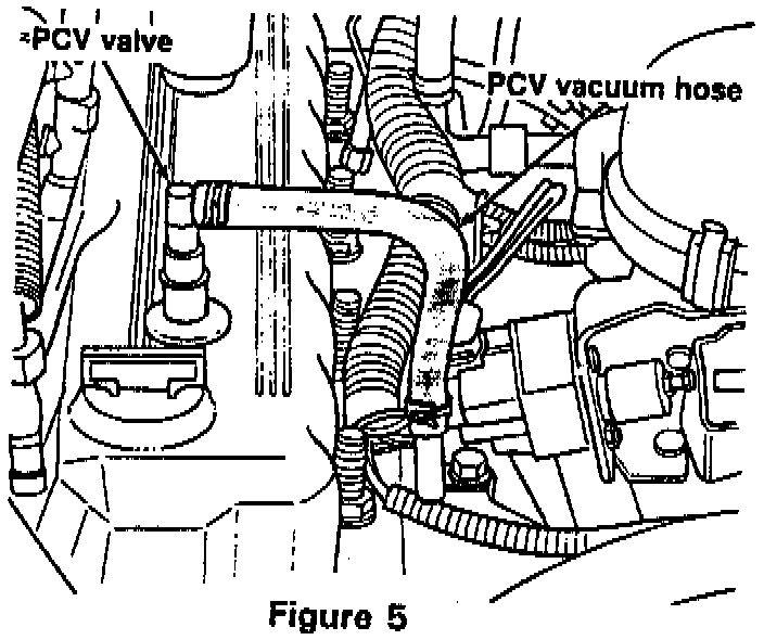 b. Remove old PCV hose from vacuum tubing and PCV valve.