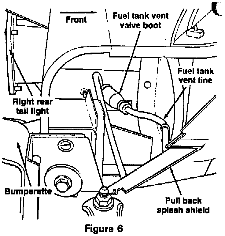 a. Pull back splash shield and locate fuel tank vent valve in fuel vent line in right rear fender well of vehicle (Figure 6).