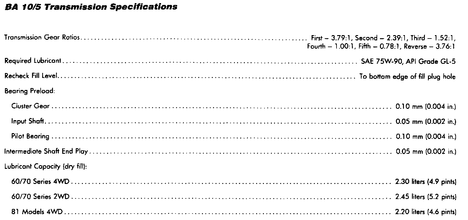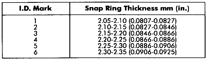 AX-5, Counter Gear Front Bearing Snap Ring Chart: