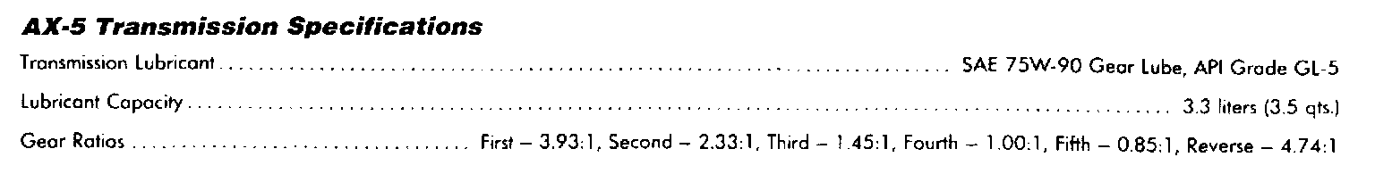 AX-5, Third Gear And 3-4 Synchronizer Snap Ring Chart:
