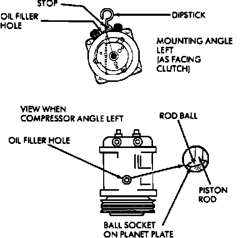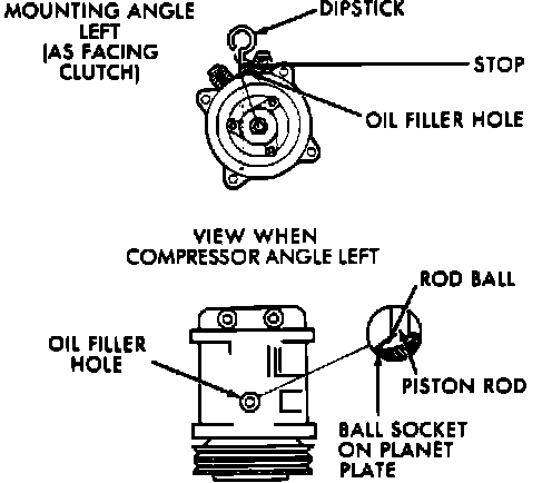 5. On models with SD 508 compressor, look through oil filler plug hole and rotate clutch front plate to position internal parts.