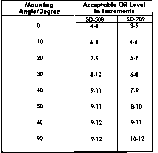 Fig. 4 Mounting Angle Degree & Oil Level. Sankyo Compressors:
