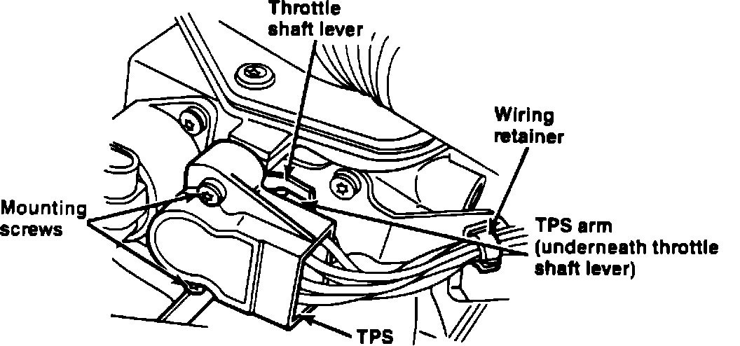 3. Remove the TPS mounting screws and remove the TPS, with retaining clip, from the throttle body.
