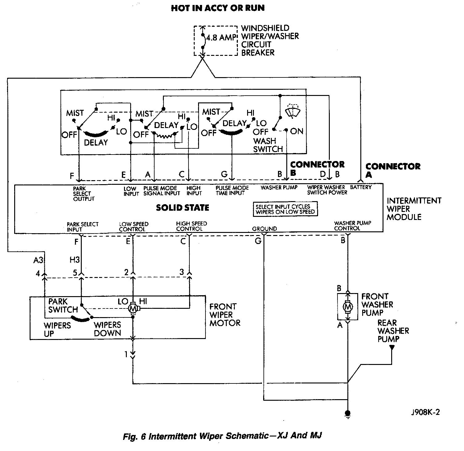 5. WITH INTERMITTENT WIPERS: Connector B unplugged