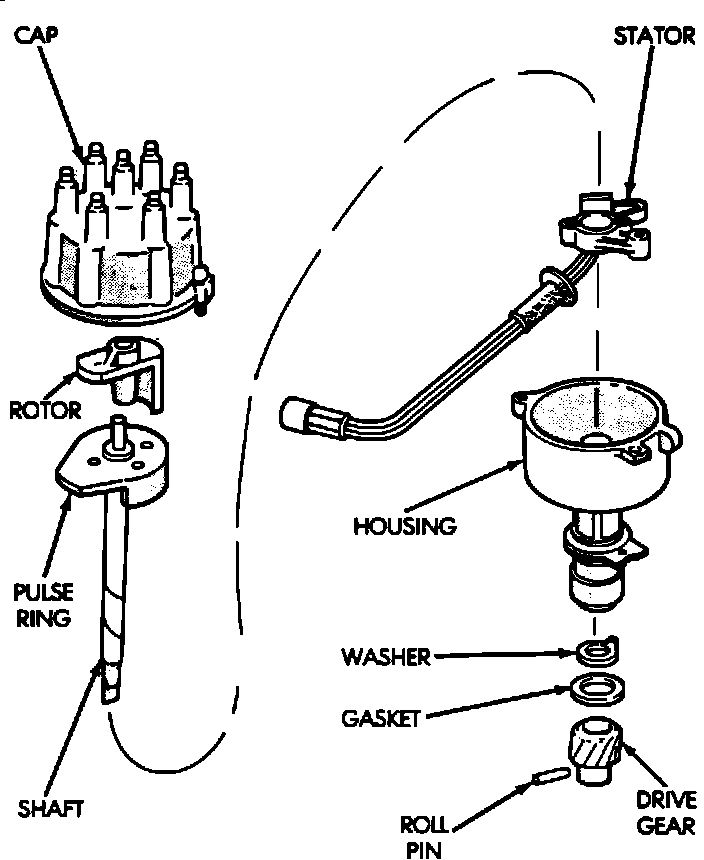 houses the Sync pulse generator assembly, and distributes high voltage secondary output through the rotor and