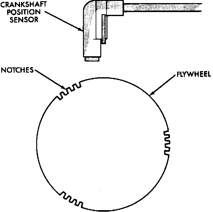 Disconnect the engine speed sensor electrical connector from the wiring harness. Check the resistance of the sensor by placing an ohmmeter across terminals A and B (marked on sensor connector). With the engine at normal operating temperature, the ohmmeter should read 200 ± 75 ohms. Replace sensor if ohmmeter readings are not within specifications.