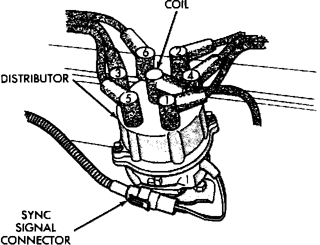 4. Check that the electrical connections are properly connected to the ignition coil, and check that the secondary ignition cables are properly routed and connected to the distributor cap and respective spark plugs.