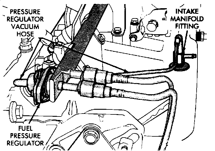 10. Check that the fuel pressure regulator vacuum hose is firmly attached to the fuel pressure regulator and the intake manifold nipple. Check that there are no vacuum leaks in this circuit.
