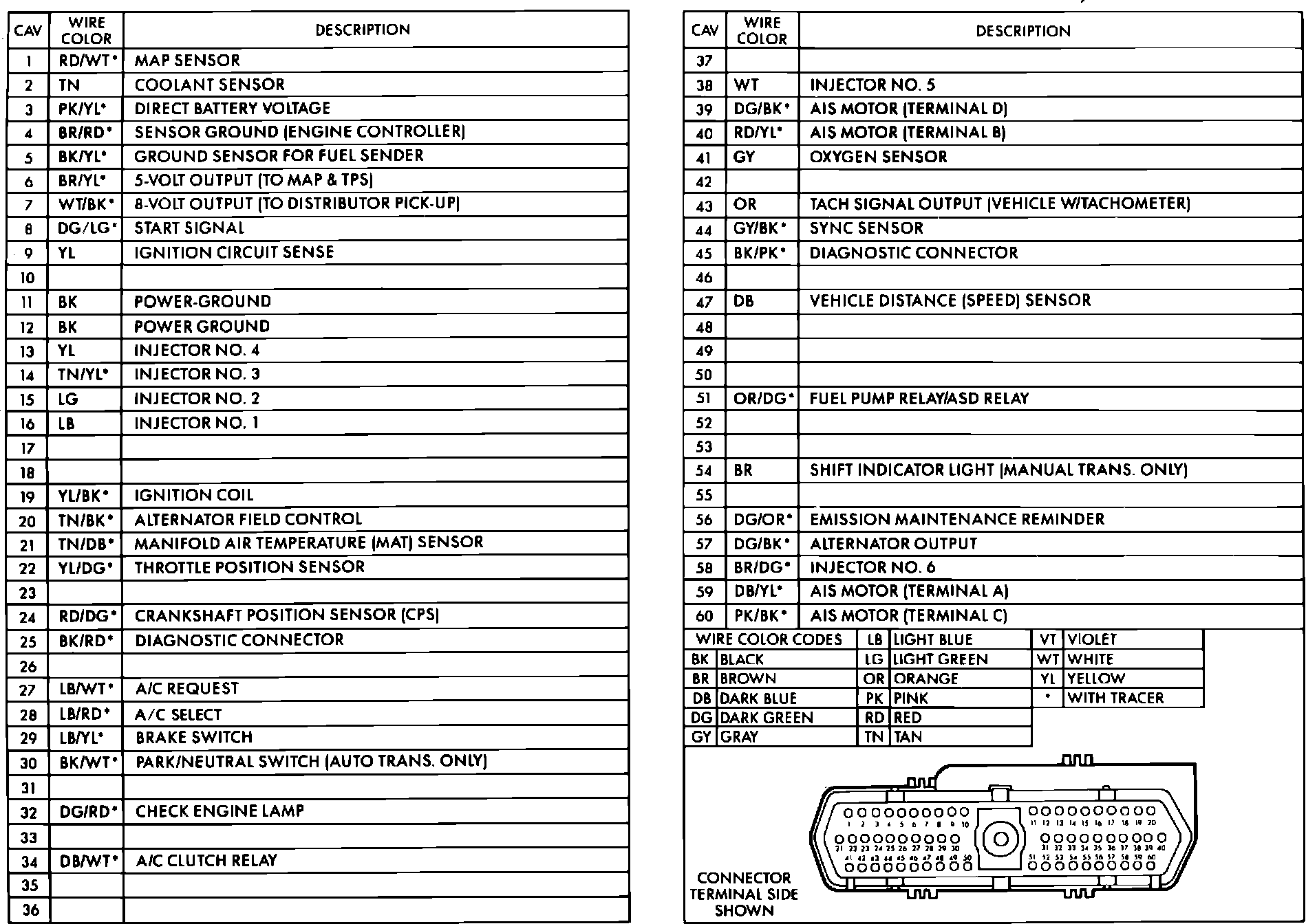 60 Way Electronic Control Unit Connector 4.0L Engine: