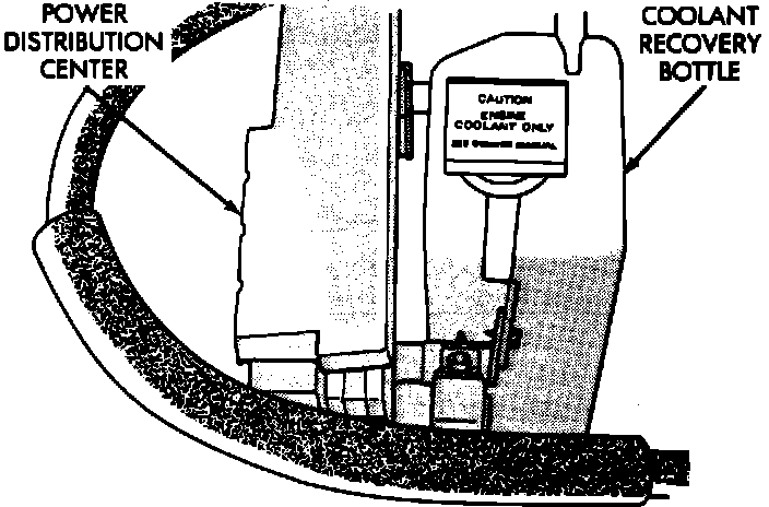 The relays are located inside the Power Distribution Center. The Power Distribution Center is located next to the coolant recovery bottle.