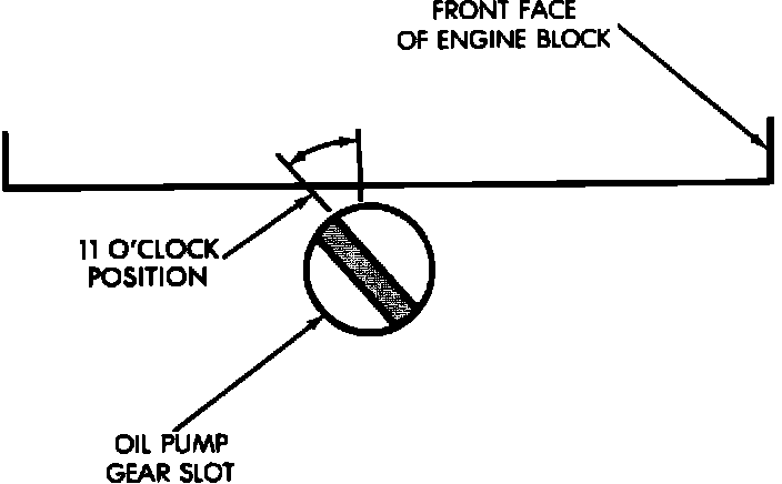 3. Using a flat blade screwdriver, rotate the oil pump gear so that the gear slot on the oil pump shaft is slightly before the 11 o'clock position.