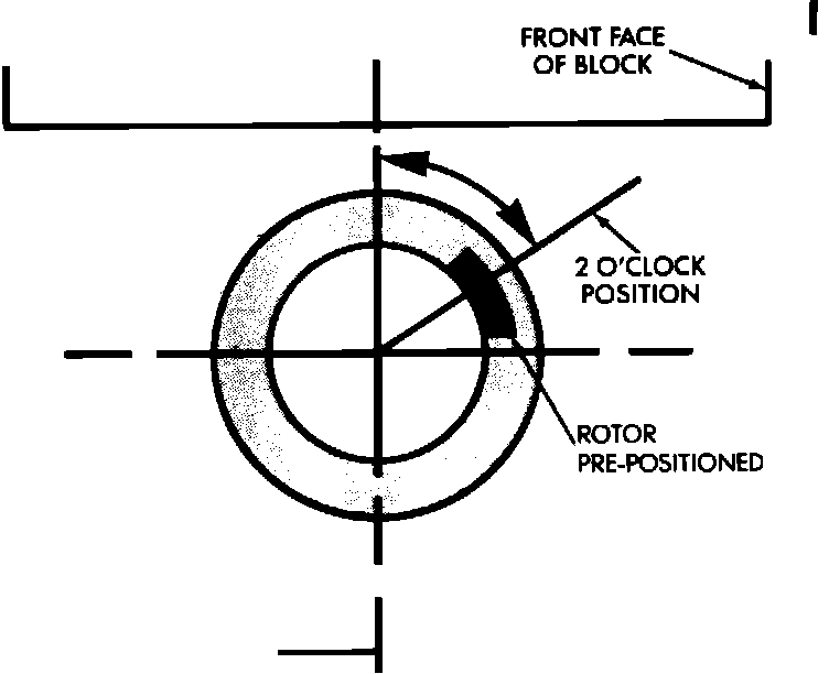 4. With the distributor cap removed, install the distributor with the rotor located just past the the 2 o'clock position.