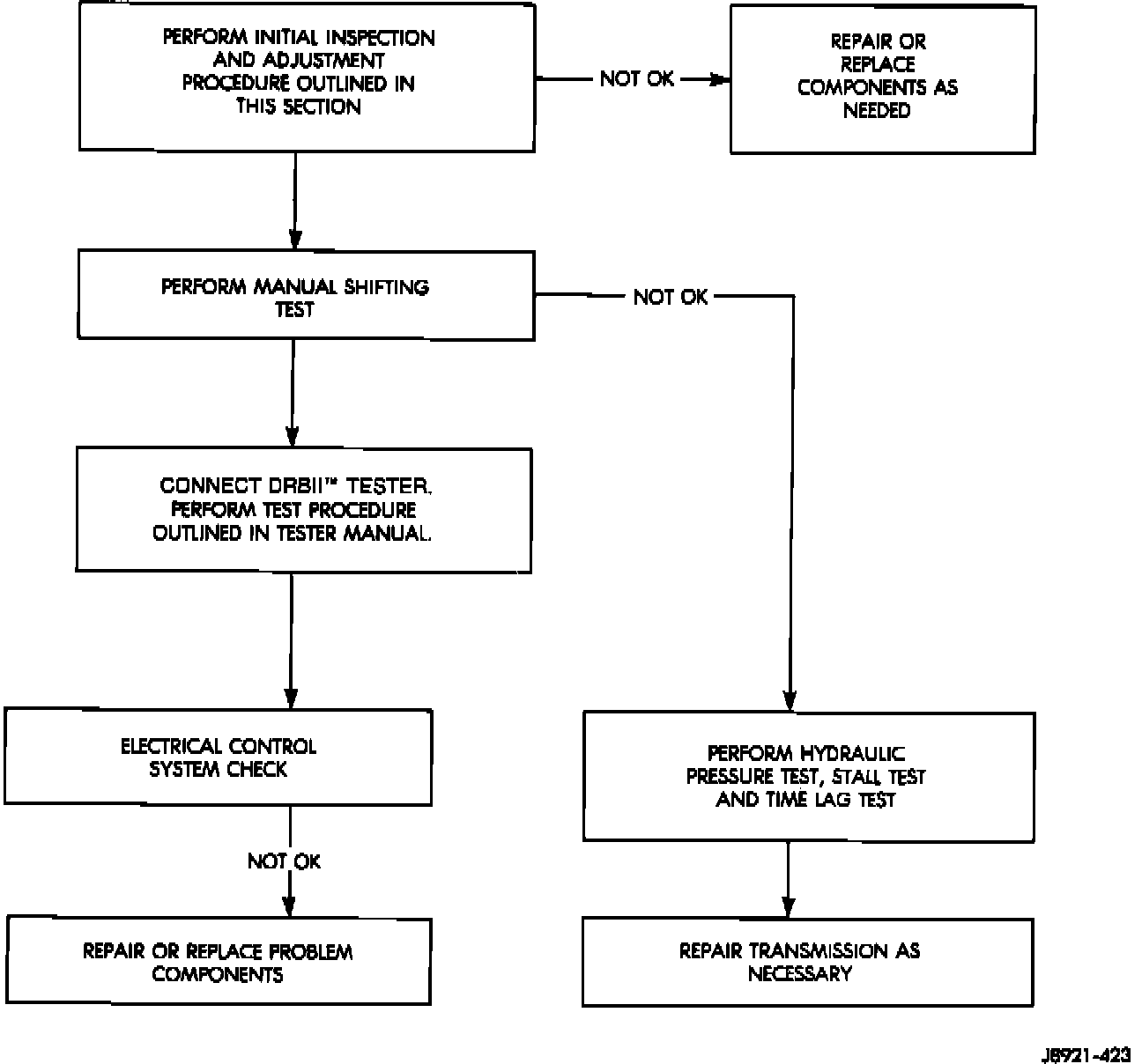 Diagnosis should begin with the Preliminary Check Procedure. It is will help determine if a problem is mechanical or electrical. The first procedure step is Initial Inspection and Adjustment.