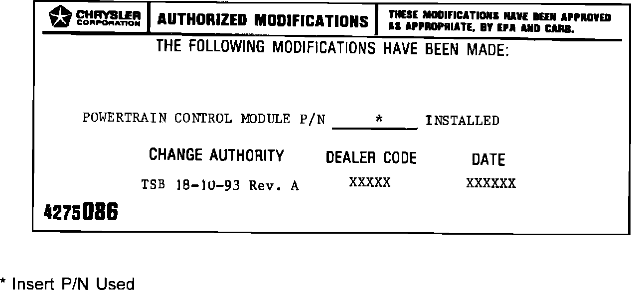 This repair involves replacement of the Powertrain Control Module (Single Board Engine Controller - SBEC) with a revised one.
