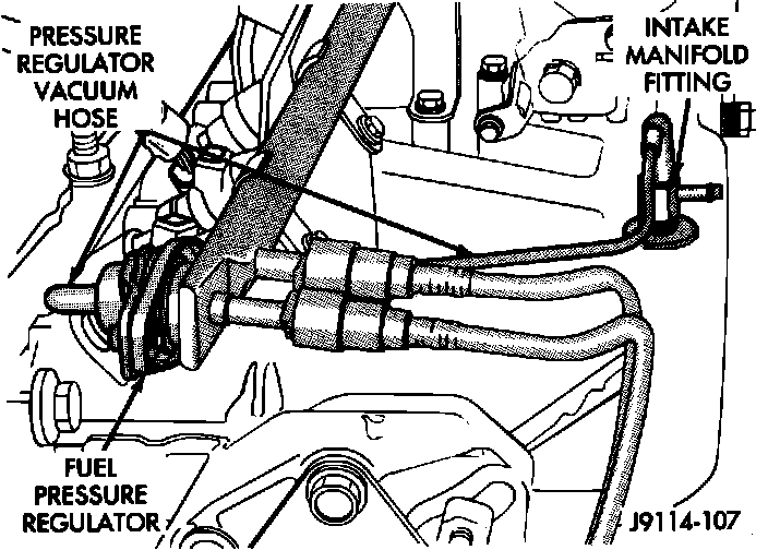 10. Verify that vacuum hose is firmly connected to fuel pressure regulator and manifold fitting.