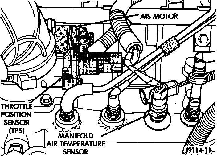 22. Verify that harness connectors are firmly connected to automatic idle speed motor and throttle position sensor.