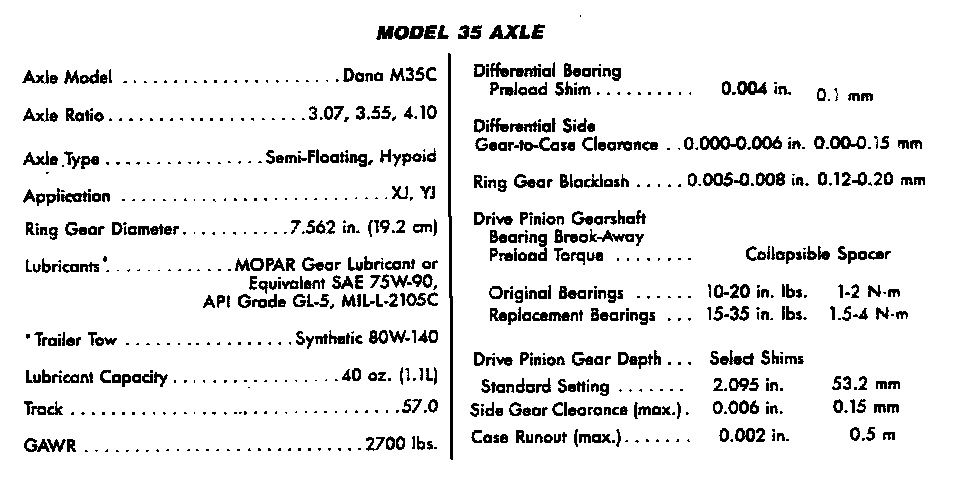 Axle Specifications