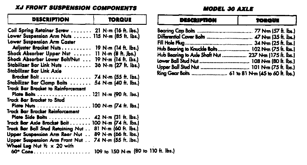 Torque Specifications