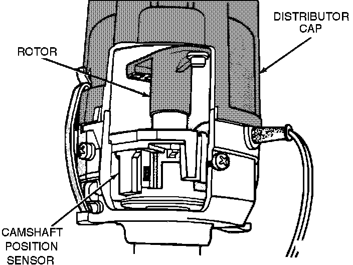 The distributor houses the Camshaft Position (CMP) Sensor, and distributes high voltage secondary output through the rotor and distributor cap and spark plug wires to the spark plugs.