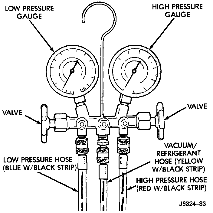 A manifold gauge set may be needed with some charging and/or recovery/recycling devices. The service hoses on the gauge set being used should have manual (turn wheel), or automatic back-flow valves at the service port connector ends. This will prevent refrigerant from being released into the atmosphere.