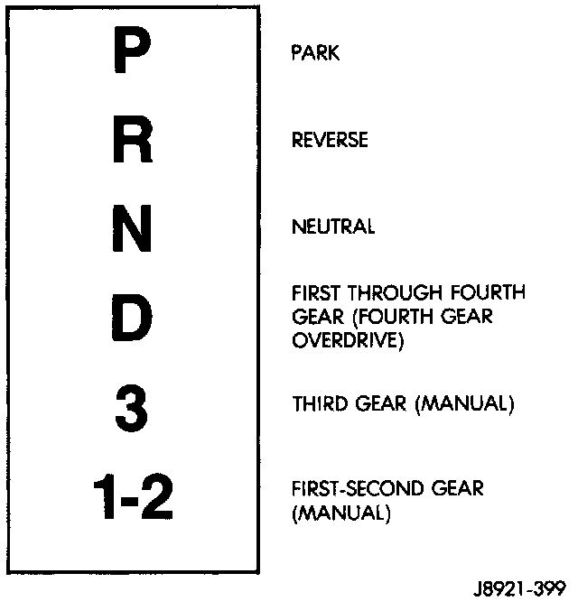 AW-4 Shift Lever Positions And Transmission Ranges: