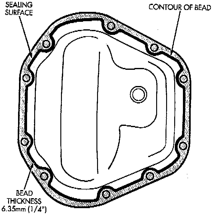 1. Scrape the residual sealant from the housing and cover mating surfaces. Clean the mating surfaces with mineral spirits. Apply a bead of MOPAR Silicone Rubber Sealant, or equivalent, on the housing cover. Install the housing cover within minutes after applying the sealant.