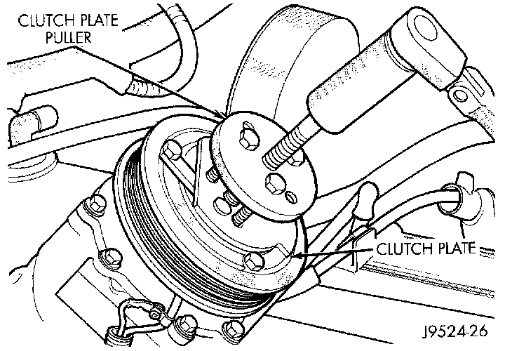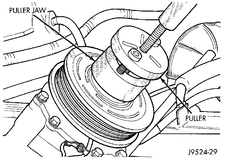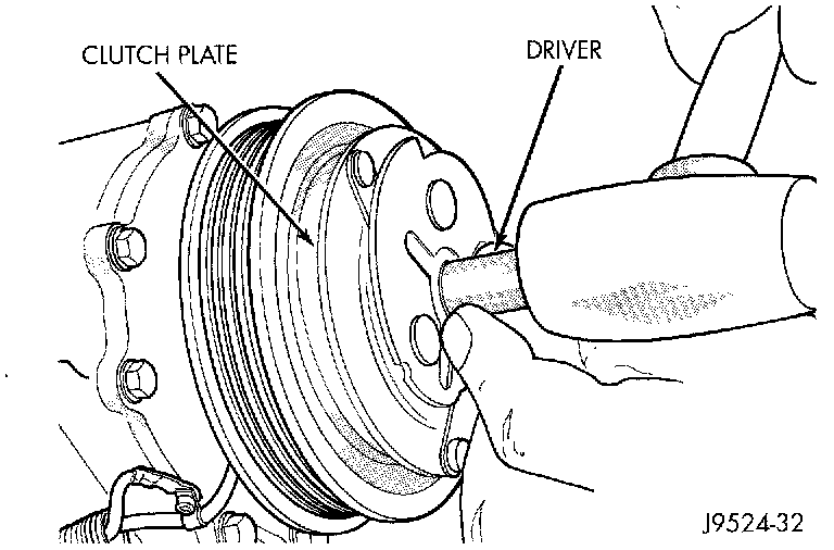NOTE: The refrigerant system can remain fully-charged during compressor clutch, pulley, or coil replacement. The compressor clutch can be serviced in the vehicle.