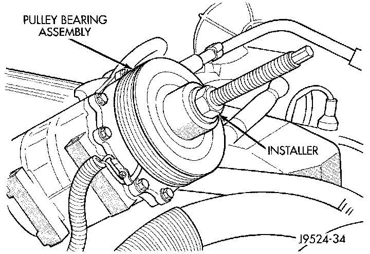 4. Install the pulley bearing assembly with the installer (Special Tool C-6871). Thread the installer on the shaft, then turn the nut until the pulley assembly is seated.
