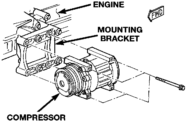 7. Remove the four bolts that secure the compressor to the mounting bracket.