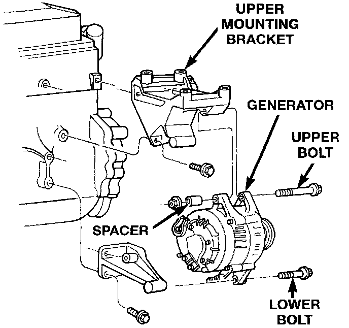 3. Remove generator pivot and mounting bolts/nut. Position generator for access to wire connectors.
