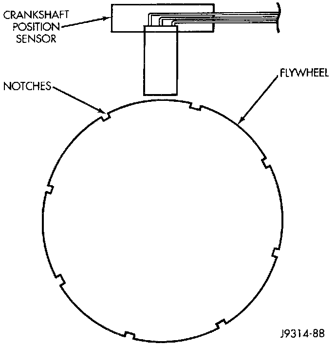 The notches cause a pulse to be generated when they pass under the sensor. The pulses are the input to the PCM. For each engine revolution, there are 8 pulses generated.
