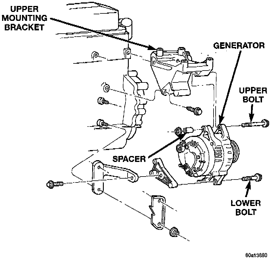- Generator lower mounting bolt - All engines - 55 N.m (41 ft. lbs.)