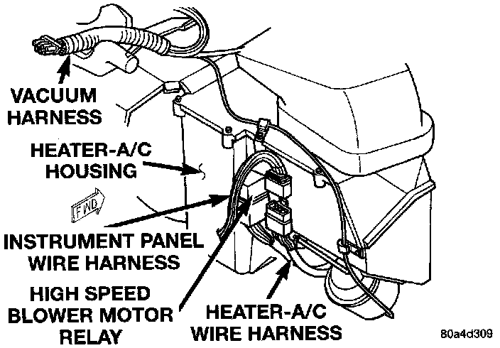 3. Locate the relay near the right end of the heater-A/C housing under the instrument panel.