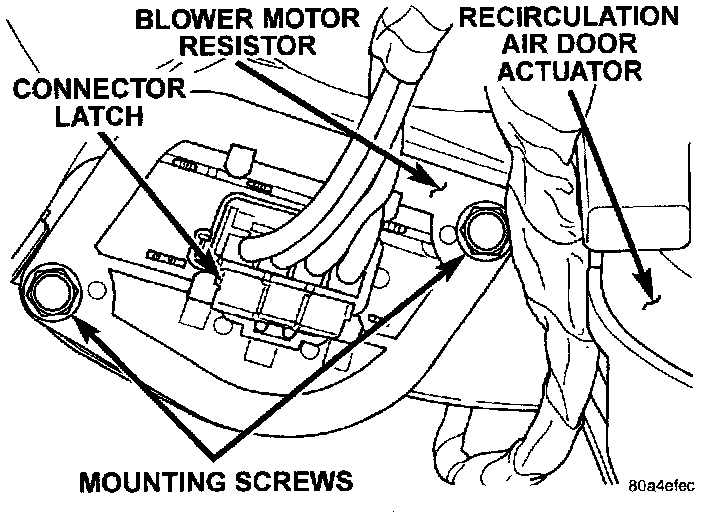 4. Remove the two screws securing the resistor to the heater-A/C housing.