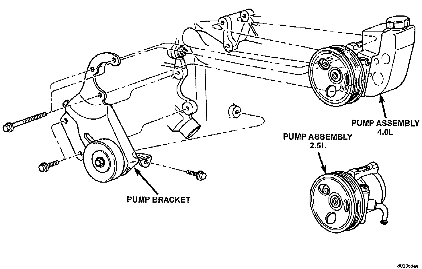 3. After power steering pump bracket and idler pulley has been tightened into position, recheck belt tension. Adjust if necessary.