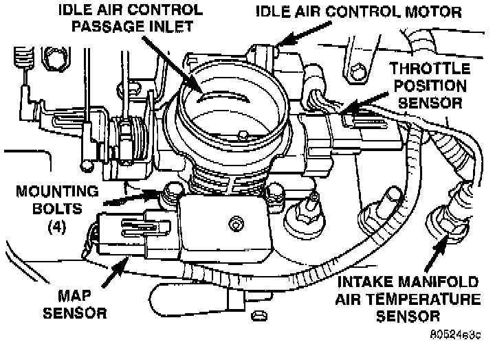 THROTTLE POSITION SENSOR (TPS)Fig. 34 Throttle Body and Sensor Locations: