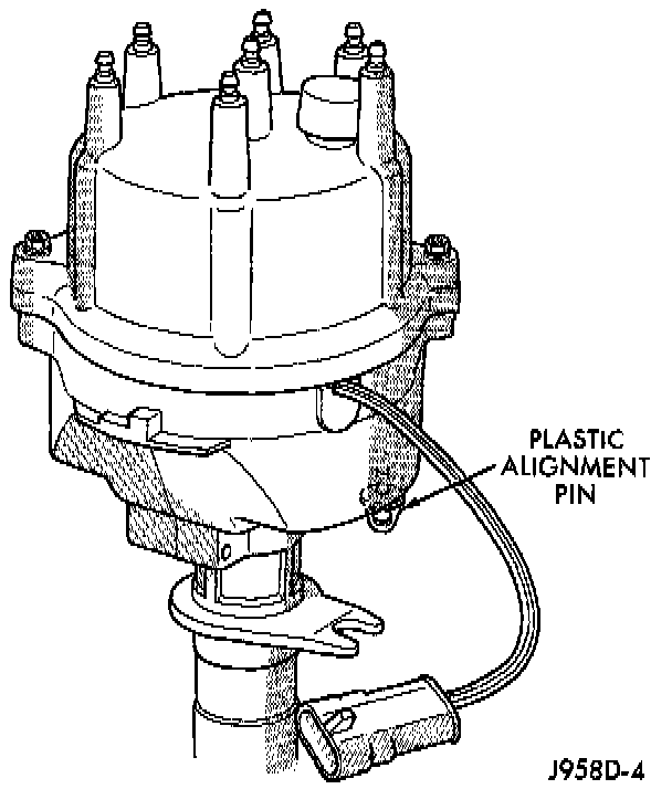 4. If the original distributor is to be reinstalled, such as during engine overhaul, the plastic pin will not be available. A 3/16 inch drift pin punch tool may be substituted for the plastic pin.
