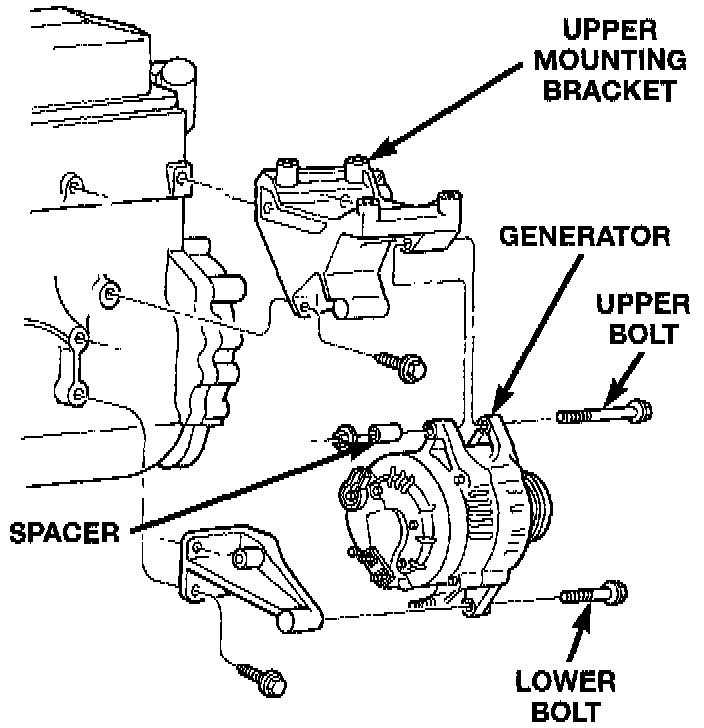 - Generator lower mounting bolt - All engines - 55 N.m (41 ft. lbs.)