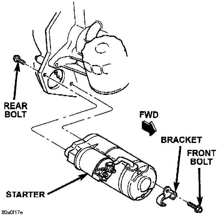 5. Reverse the removal procedures to install. Tighten the starter hardware as follows: