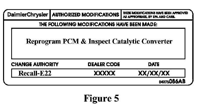 Type or print (with a ballpoint pen) the recall number, dealer code and date on the Authorized Modifications Label (Figure 5).