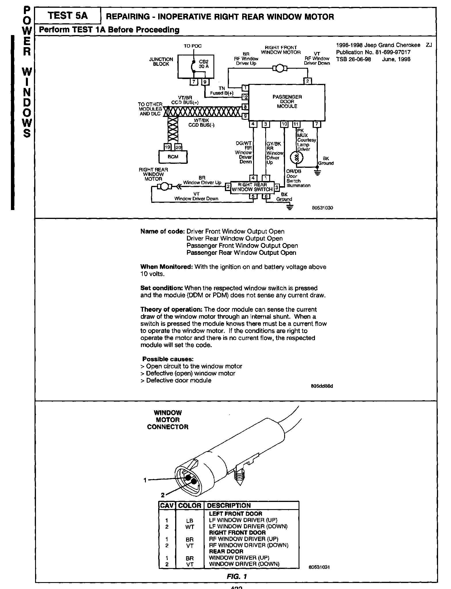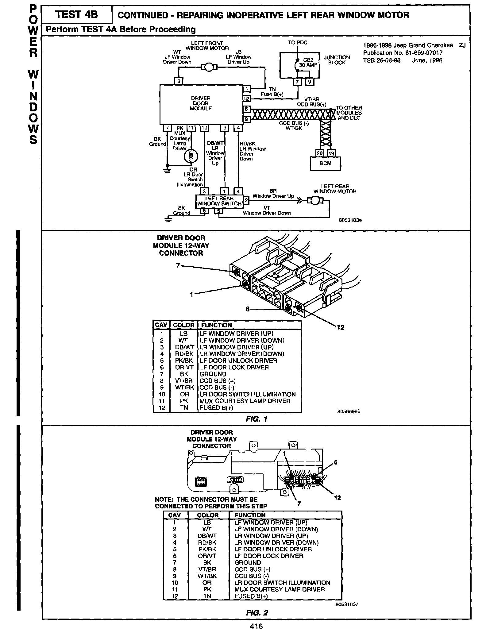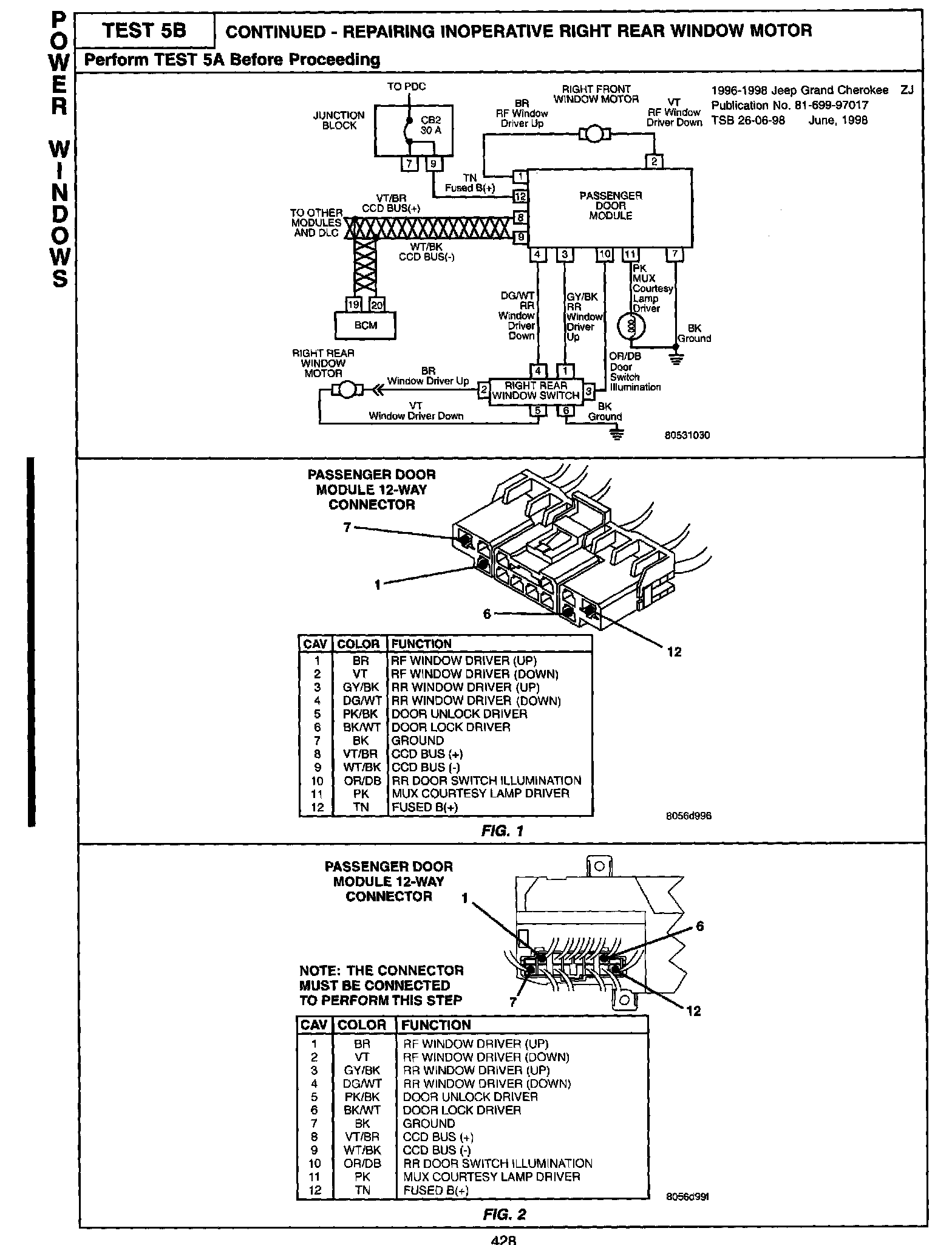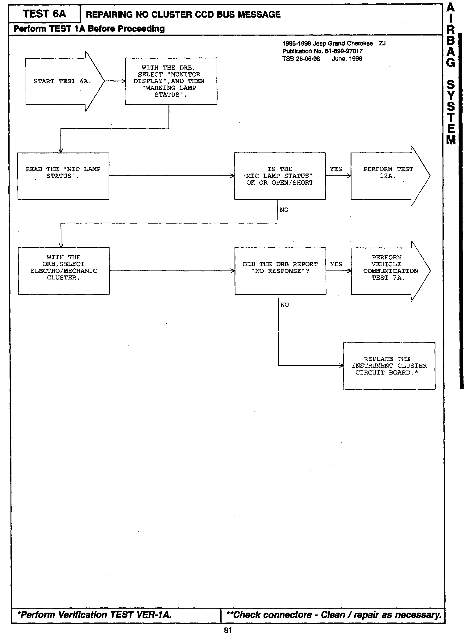 1996 - 1998 Jeep Grand Cherokee Body Diagnostic Manual - Publication Number 81-699-97-17