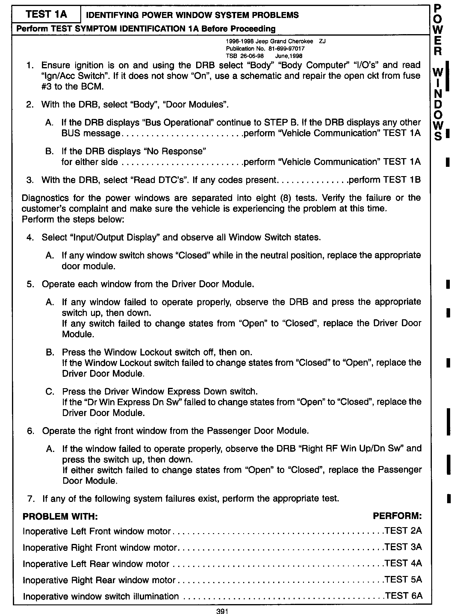 Revisions to the power window systems tests