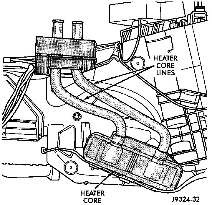2. Remove the screws and retainers that secure the heater core to the heater-A/C housing.