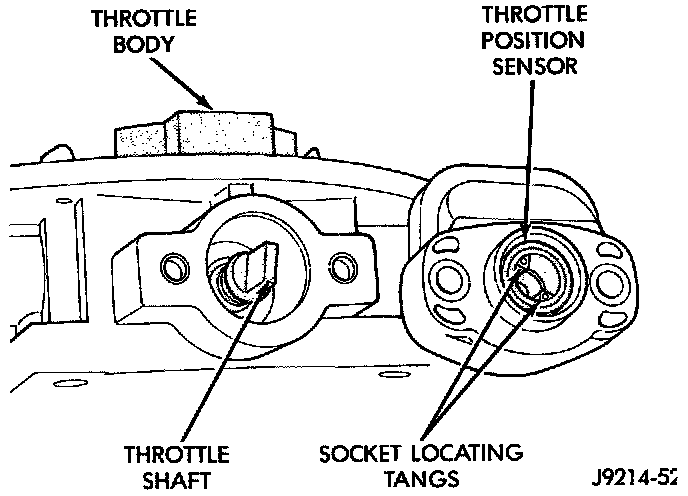 The throttle shaft end of the throttle body slides into a socket in the TPS (Fig. 68). The TPS must be installed so that it can be rotated a few degrees. If the sensor will not rotate, install the sensor with the throttle shaft on the other side of the socket tangs. The TPS will be under slight tension when rotated.