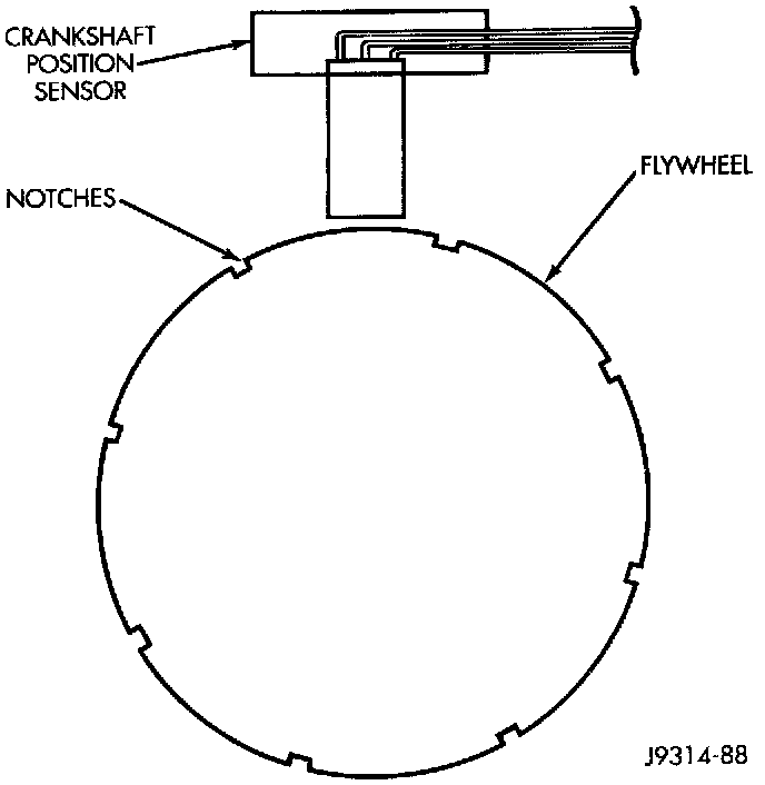 The notches cause a pulse to be generated when they pass under the sensor. The pulses are the input to the PCM. For each engine revolution, there are 8 pulses generated on V-8 engines.