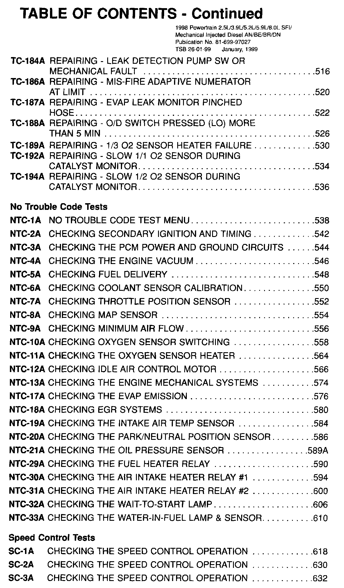 1998 Powertrain 2.5L. 3.9L, 5.2L, 5.9L, 8.0 SFI, Mechanical Injected Diesel Diagnostic Manual - Publication Number 81-699-97027