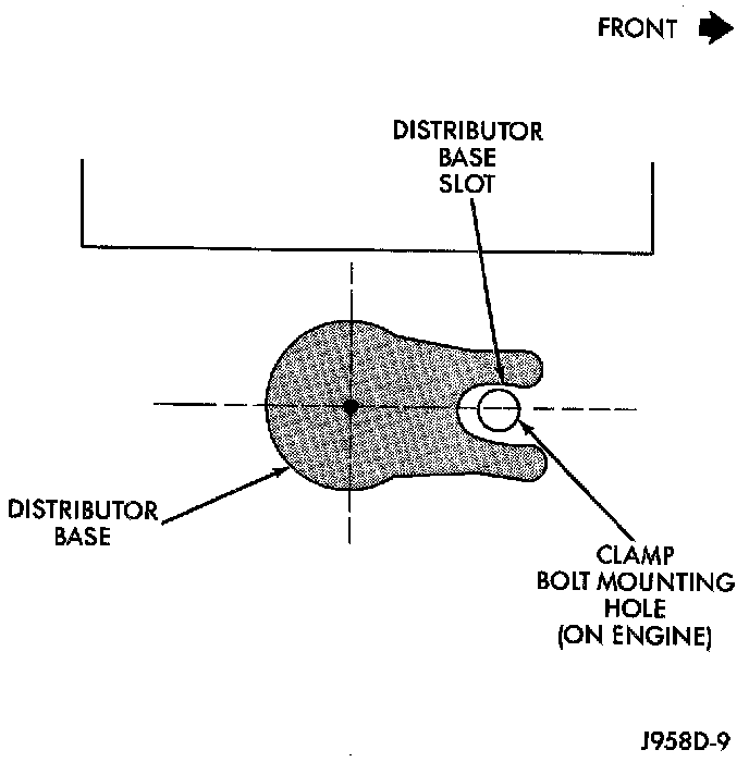 - the centerline of the slot at the base of the distributor is aligned to the centerline of the distributor hold-down bolt hole on the engine. In this position, the hold-down bolt should easily pass through the slot and into the engine.