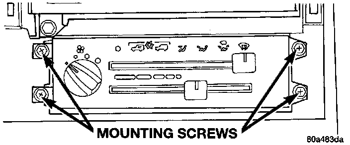 5. Remove the four screws that secure the heater-A/C control to the instrument panel.